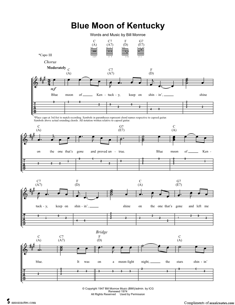 Blue moon of Kentucky, keep on shinin', shine on the one that's gone and proved untrue. |