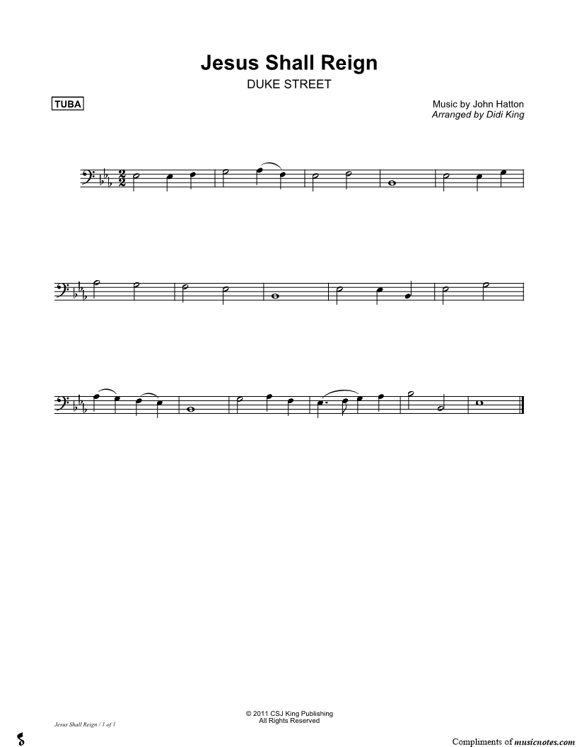 Jesus Shall Reign - Tuba (Brass Quartet) |