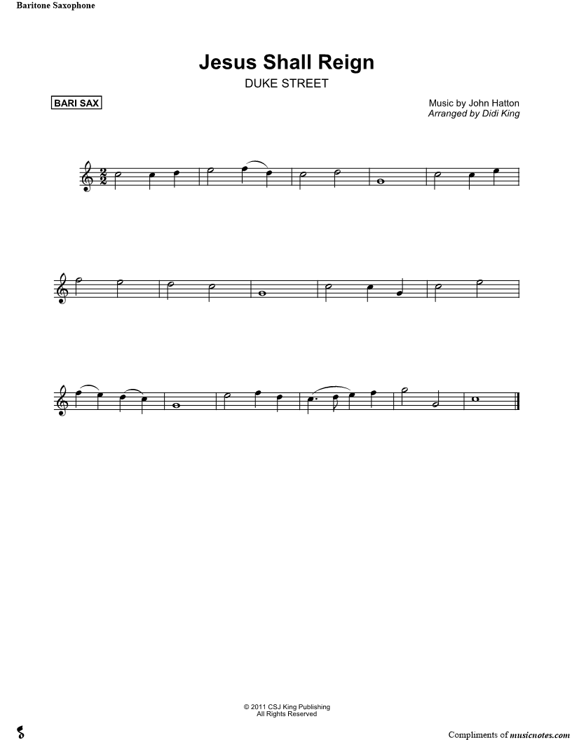 Jesus Shall Reign - Bari Sax (Saxophone Quartet) |