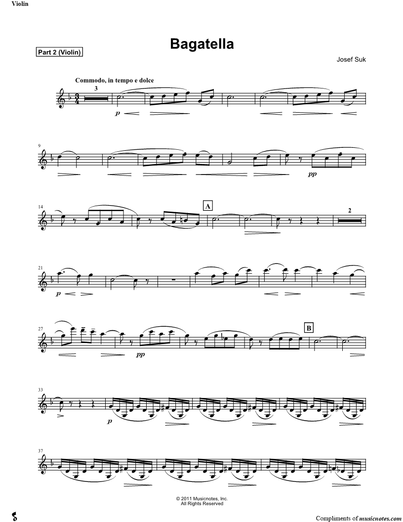 Bagatella - Violin 1 or Flute, Violin 2 & Piano Accompaniment