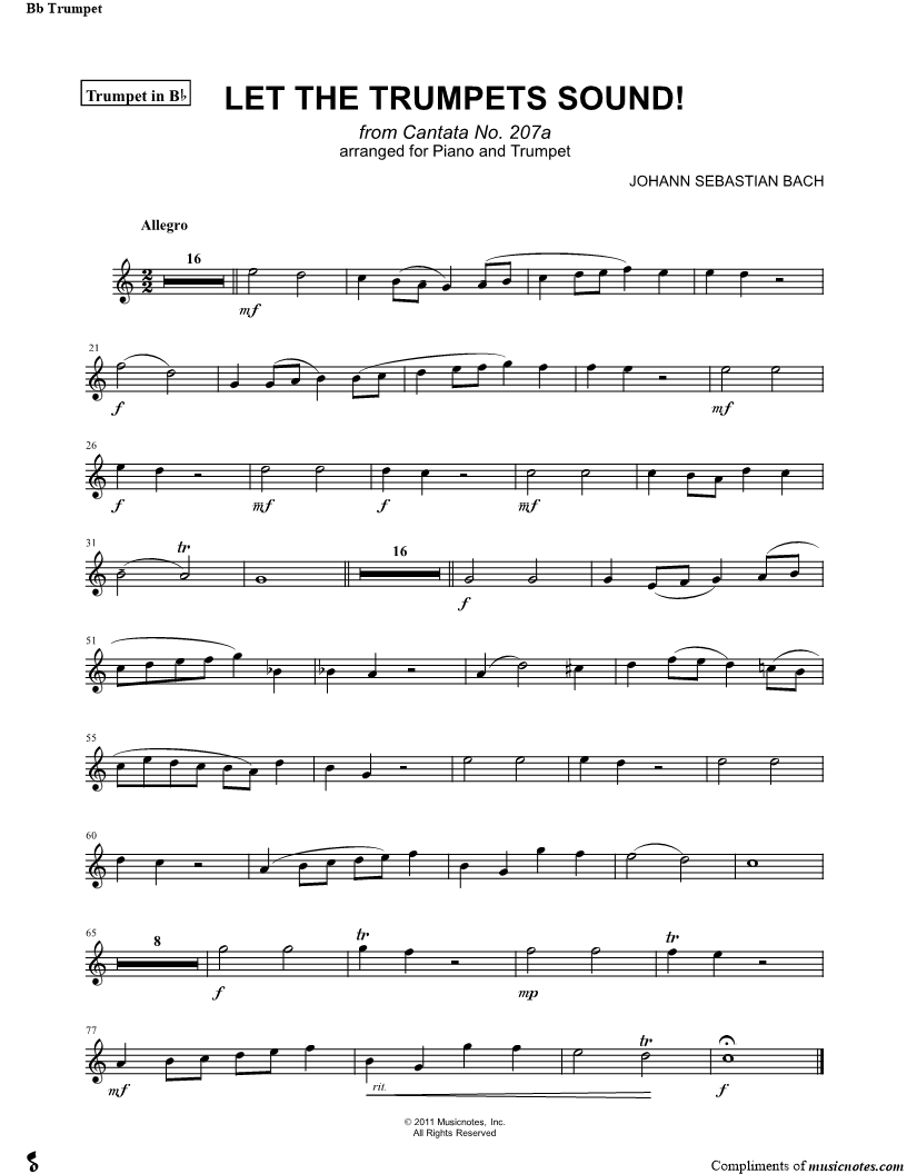 Let the Trumpets Sound! from Cantata No. 207a - Bb Trumpet Part |