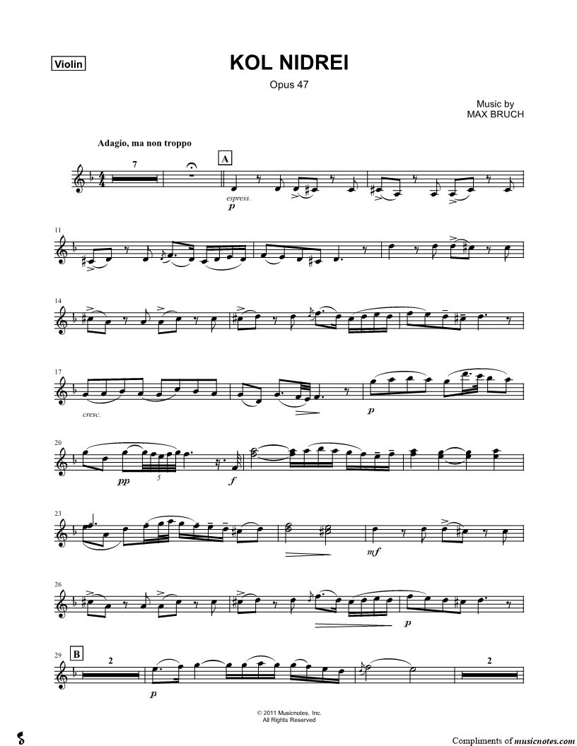 Kol Nidrei, Op. 47 - Violin Part |