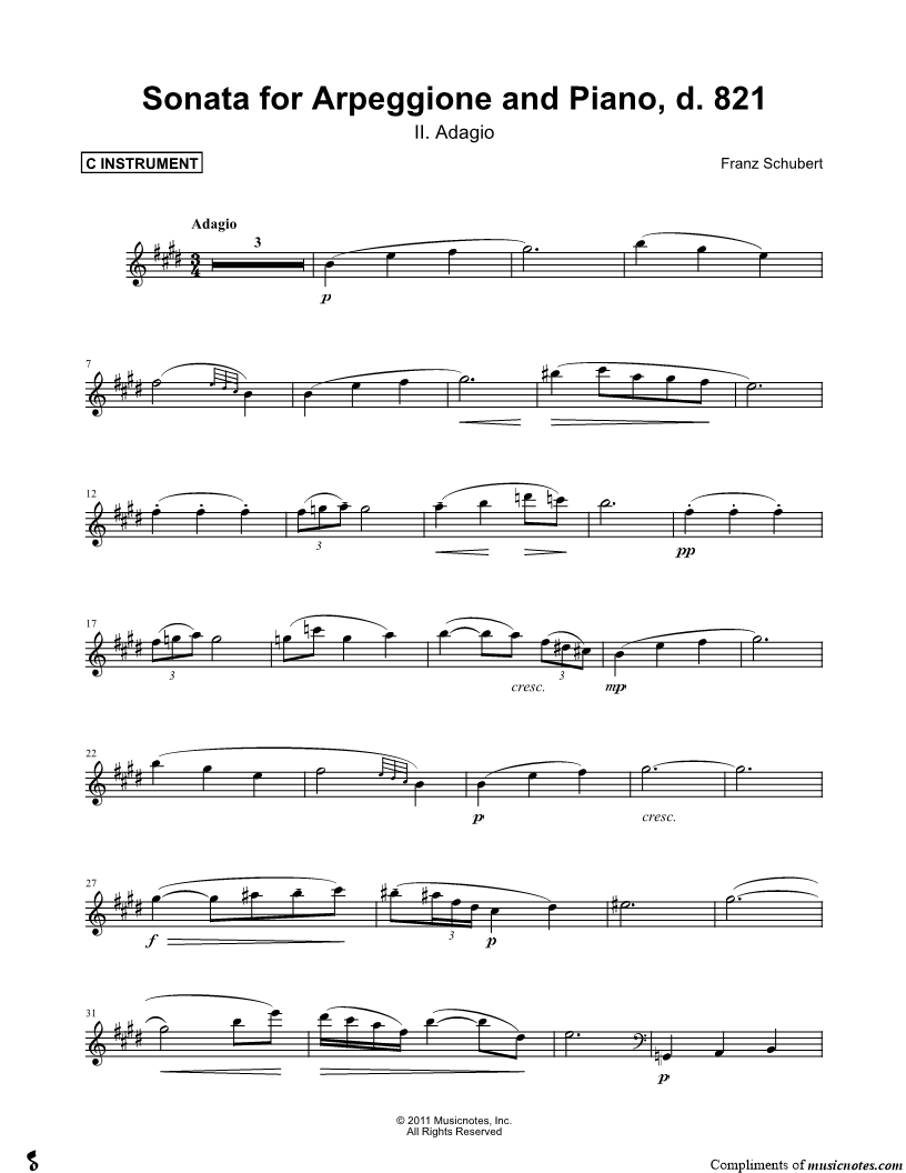 Sonata for Arpeggione and Piano, d. 821: II. Adagio - Solo part |