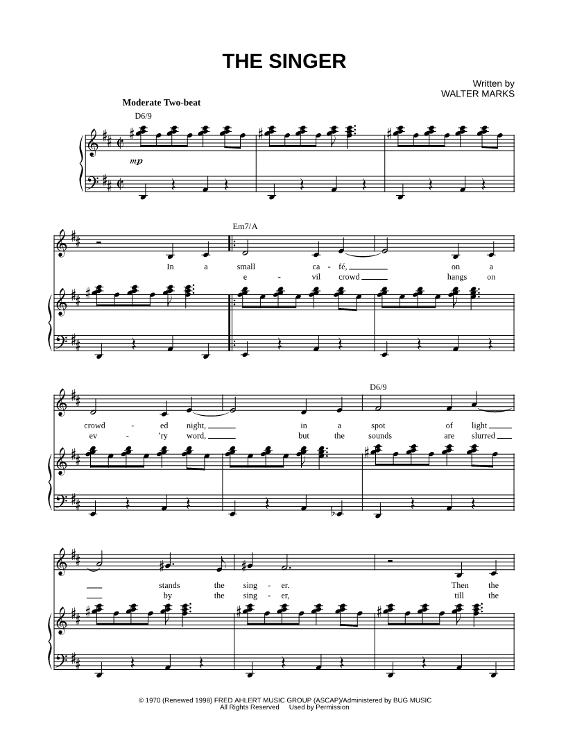 In a small cafe, on a crowded night, in a spot of light stands the singer. |