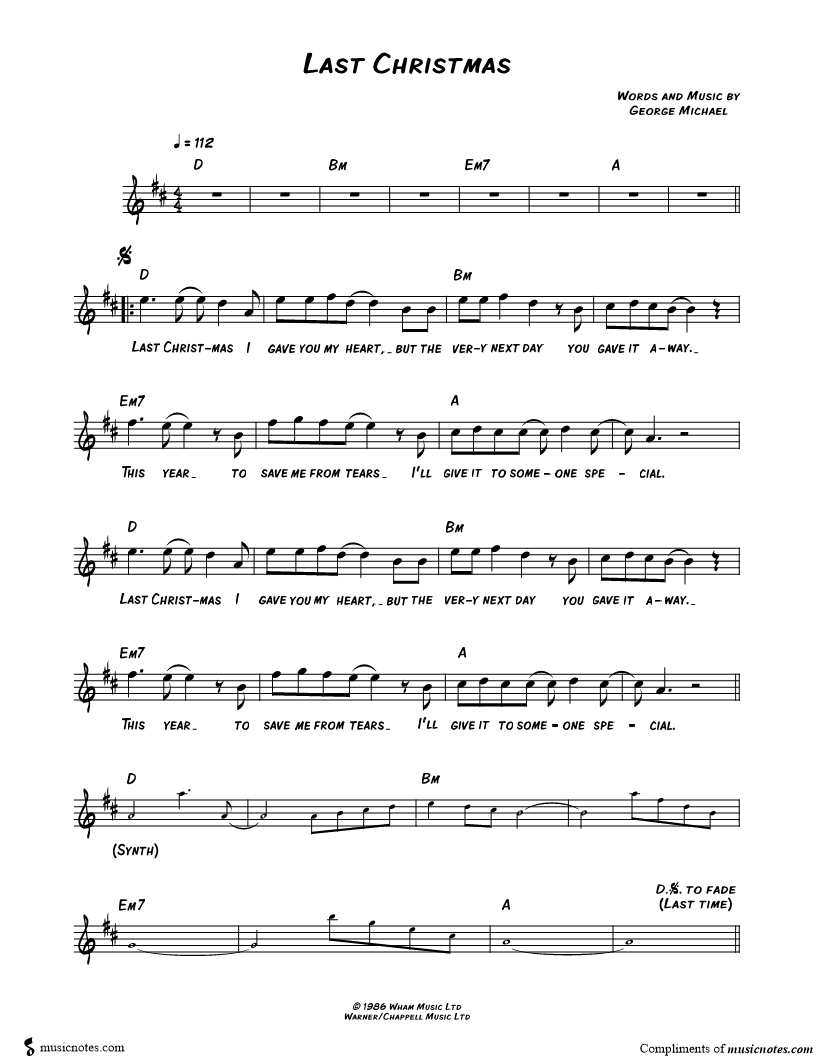 Last Christmas I gave you my heart, but the very next day you gave it away. |