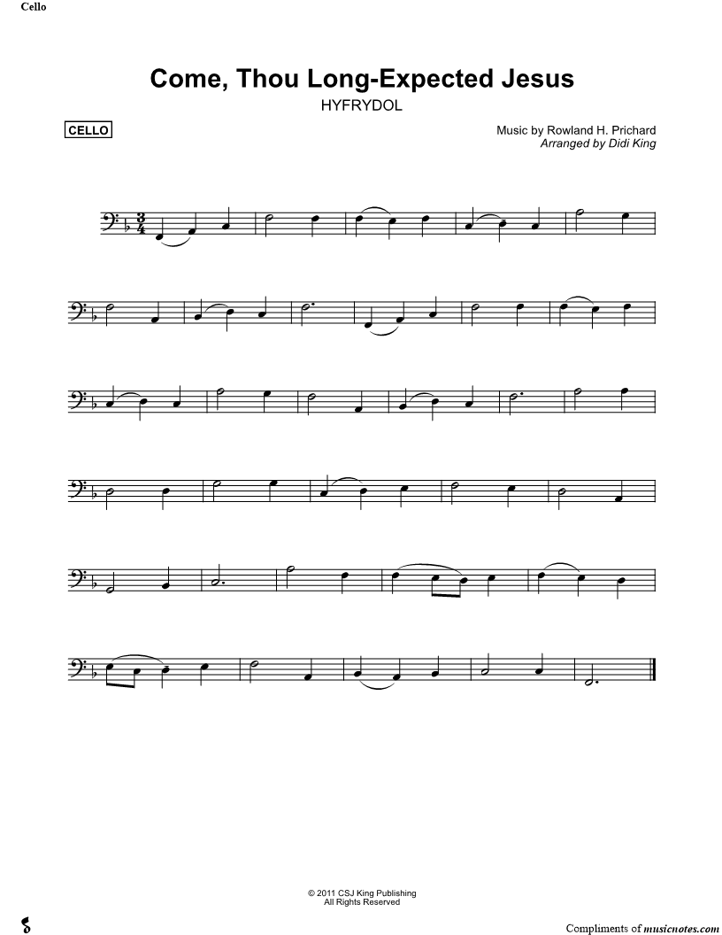 Come, Thou Long- Expected Jesus - Cello (String Quartet) |