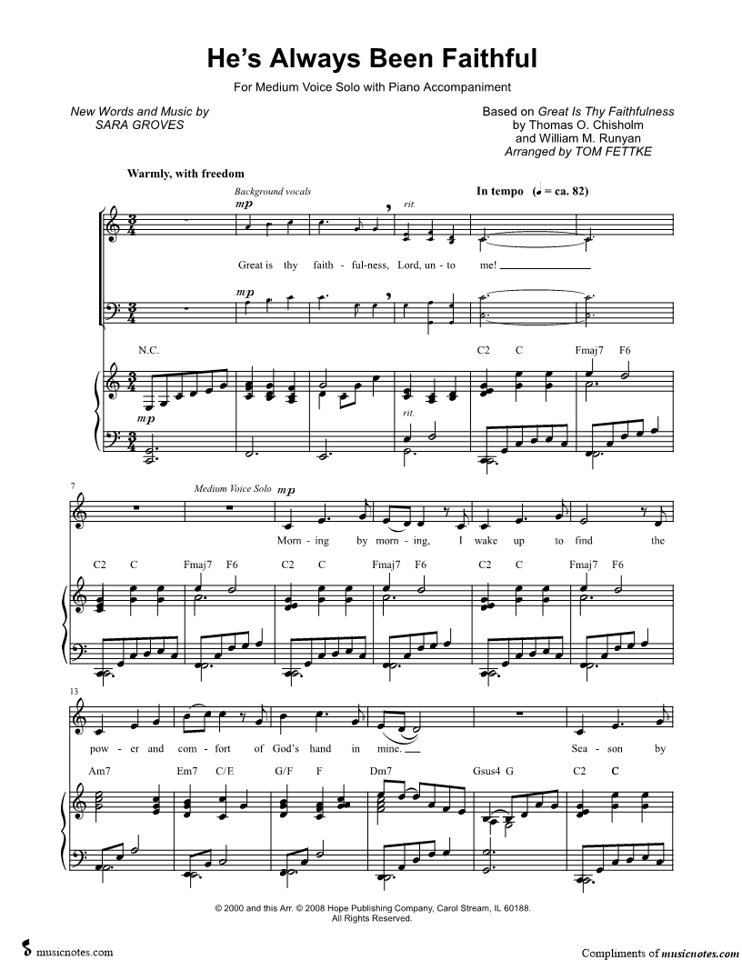 Many of the arrangements on Musicnotes have transpositions available, typically in C Major, as well as 3 sharps and 3 flats. If you do not see your desired key, you can request a transposition by reaching out to Customer Support.