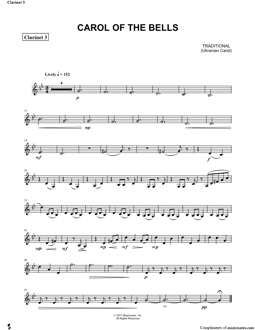Carol of the Bells - Clarinet 3 (Clarinet Quartet) |