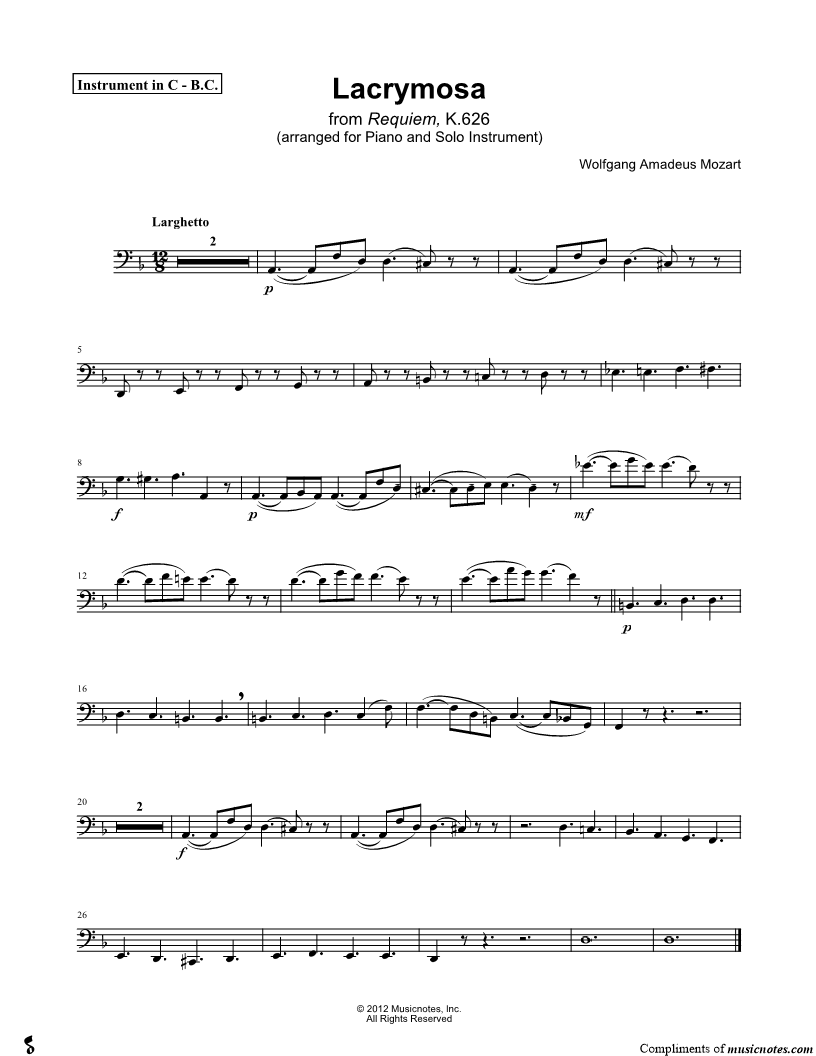 Lacrymosa, from Requiem K. 626 - Bass Clef Instrument |