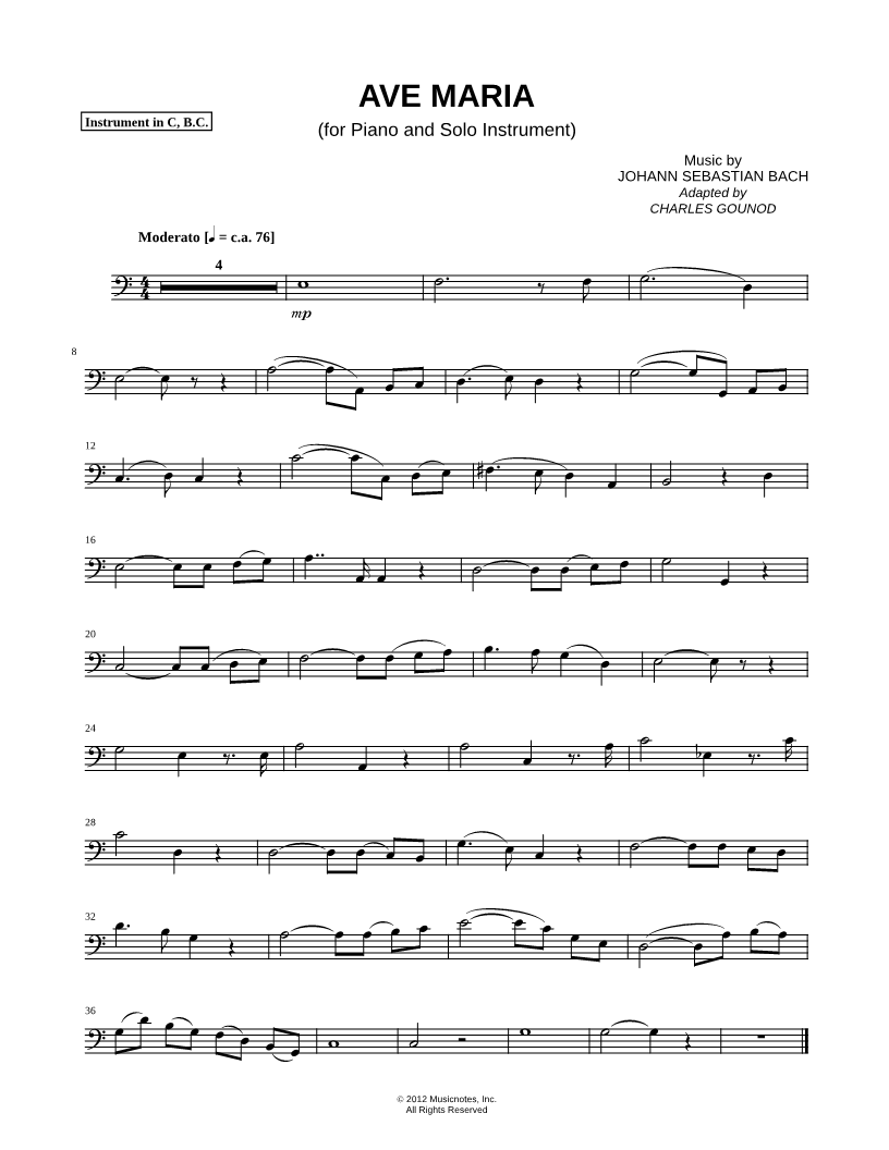 Collection: Ave Maria - Bass Clef Instrument & Piano Accompaniment