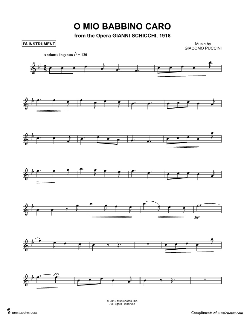 Gianni Schicchi: "O mio babbino caro" - Bb Instrument |