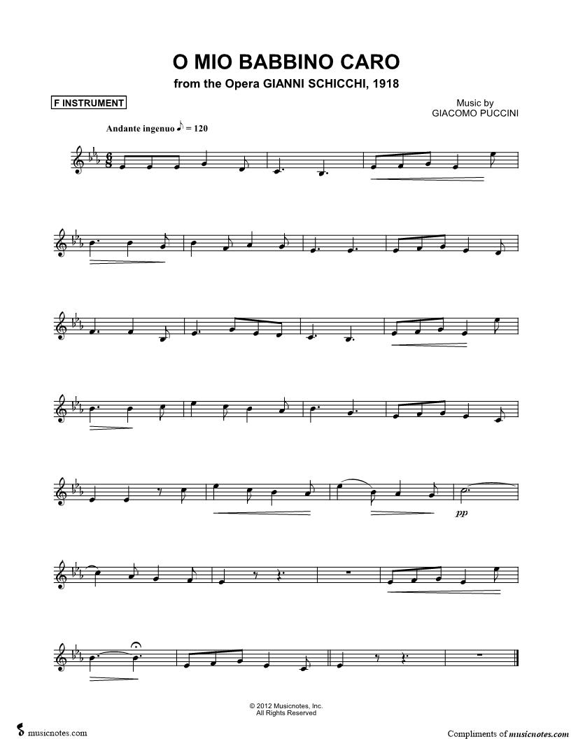 Gianni Schicchi: "O mio babbino caro" - F Instrument |