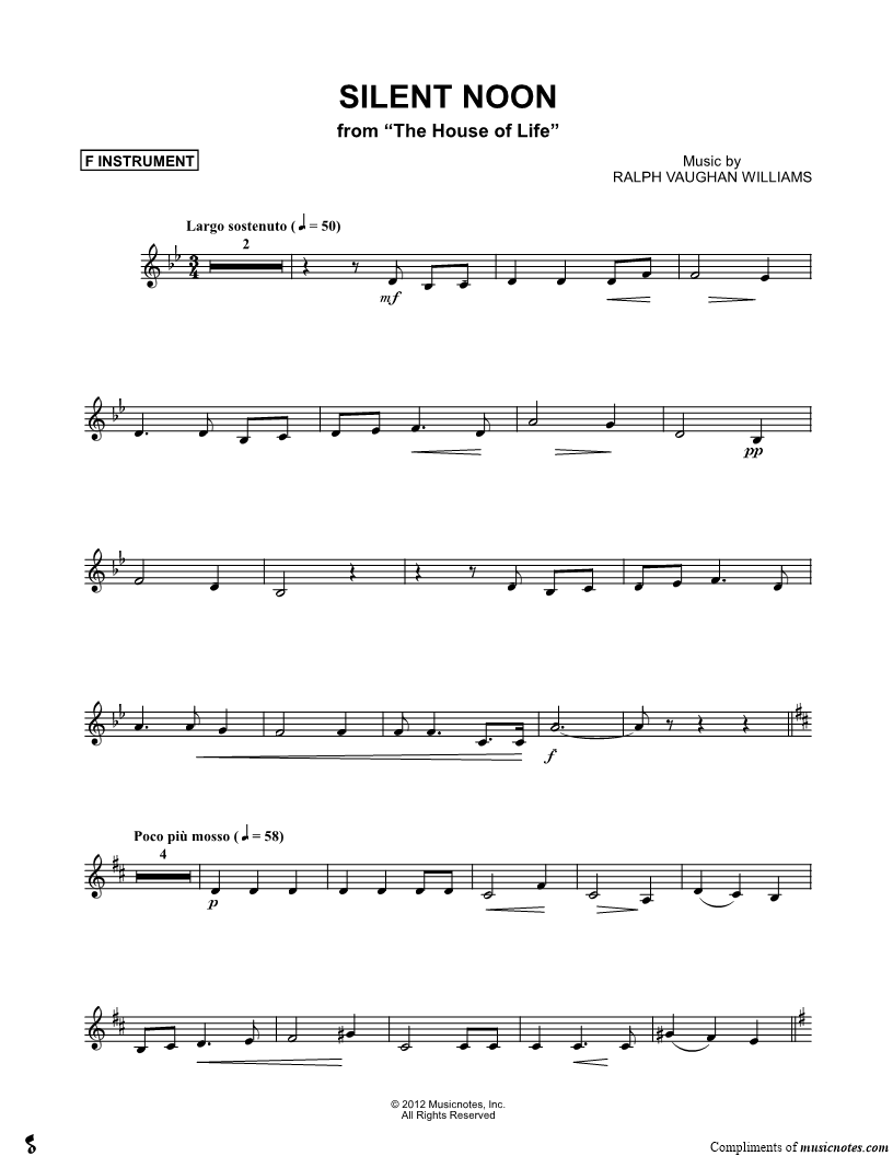 Silent Noon - F Instrument |