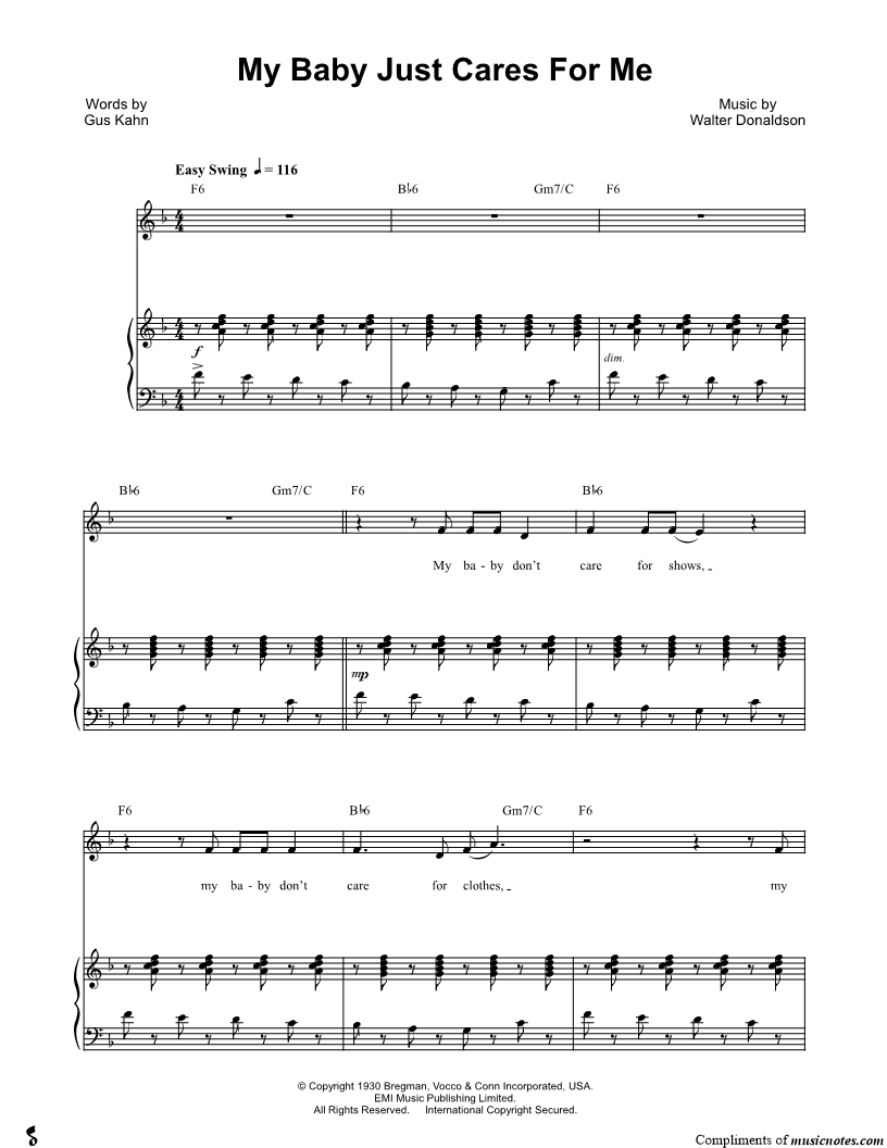 My baby don't care for shows, my baby don't care for clothes, my baby just cares for me. |