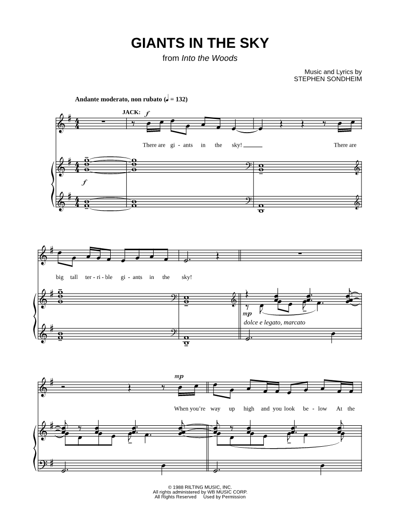 "This is the sheet music from GIants in the Sky from the Broadway version of Into the Woods..." Read reviews