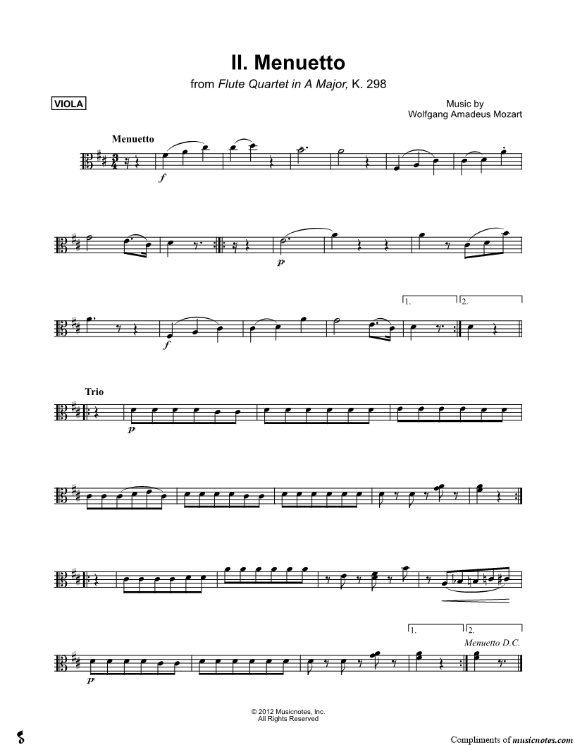 Flute Quartet in A Major, K. 298: II. Menuetto - Viola |