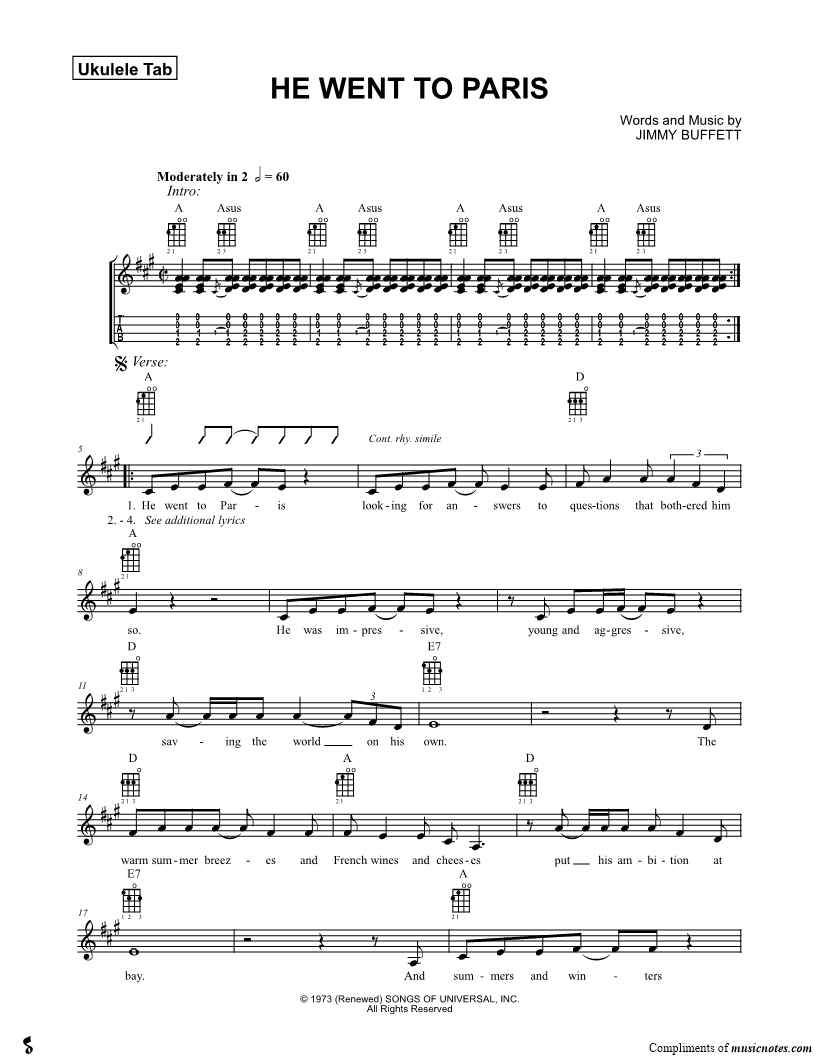 Ukulele TAB Ukulele/Vocal/Chords |