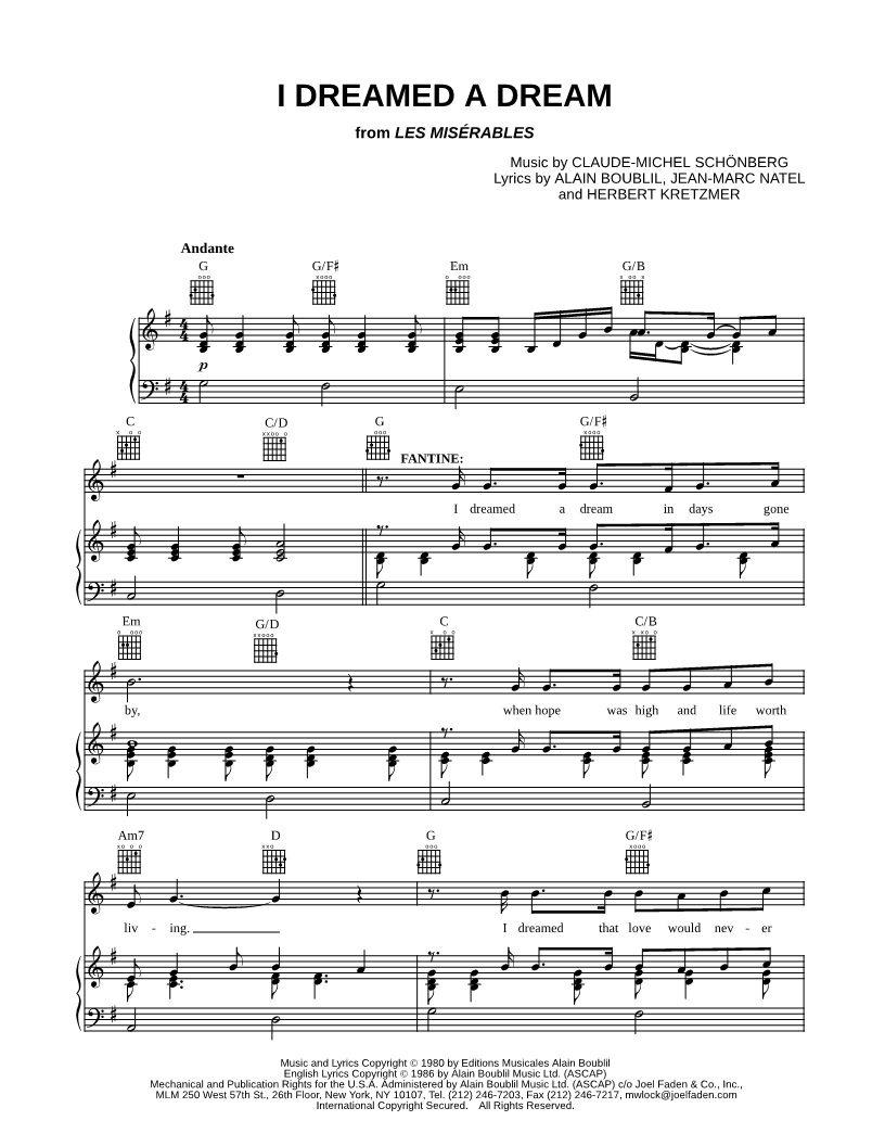 I dreamed a dream in days gone by, when hope was high and life worth living. |