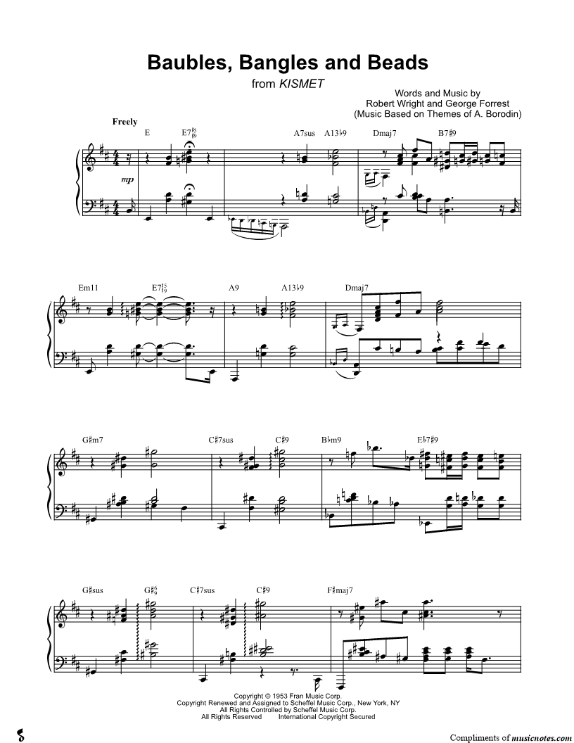 Musicnotes sells a wide variety of digital sheet music products including Singer Pros, Beginner Notes, Choral music, Piano Solos, Lead Sheets, Piano/Vocal/Guitar, Solo and Accompaniment, and fretted instrument tablature.