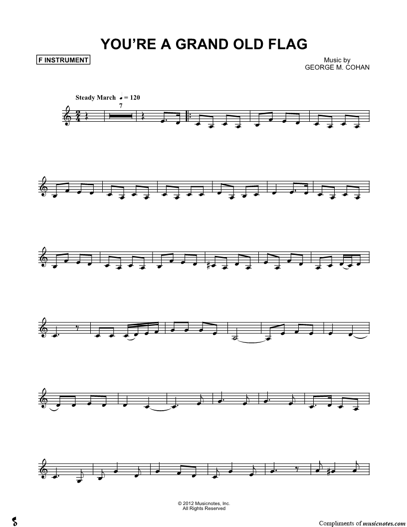 You're a Grand Old Flag - F Instrument & Piano Accompaniment