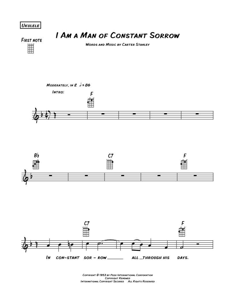 Ukulele/Vocal/Chords Leadsheet |