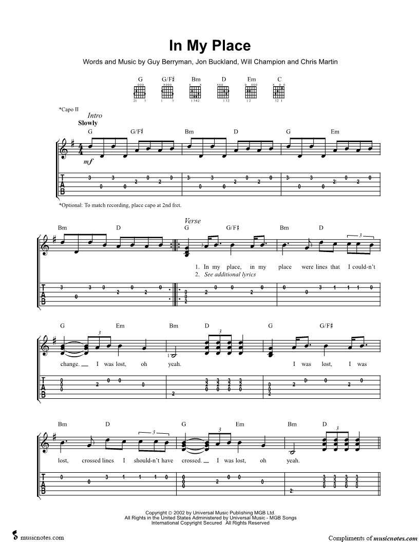 Guitar Tab Guitar/Vocal |