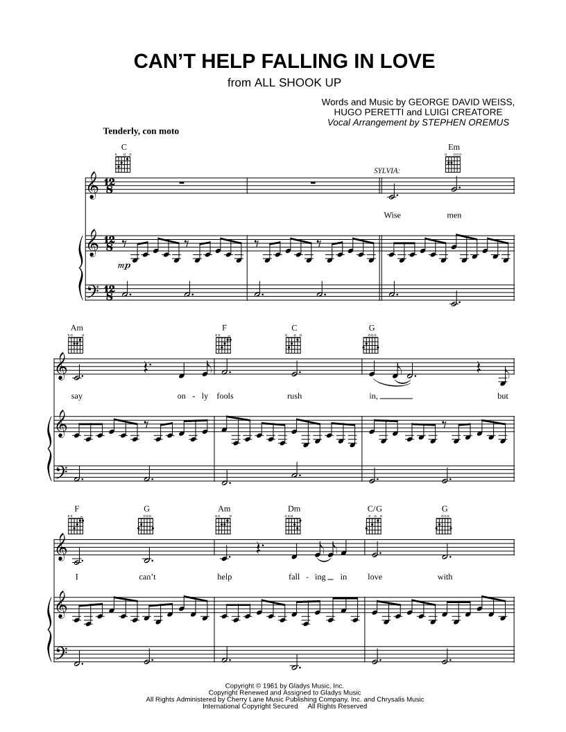 Wise men say only fools rush in, but I can't help falling in love with you. |