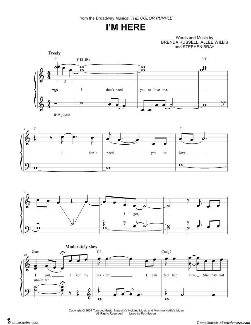 Musicnotes sells a wide variety of digital sheet music products including Singer Pros, Beginner Notes, Choral music, Piano Solos, Lead Sheets, Piano/Vocal/Guitar, Solo and Accompaniment, and fretted instrument tablature.