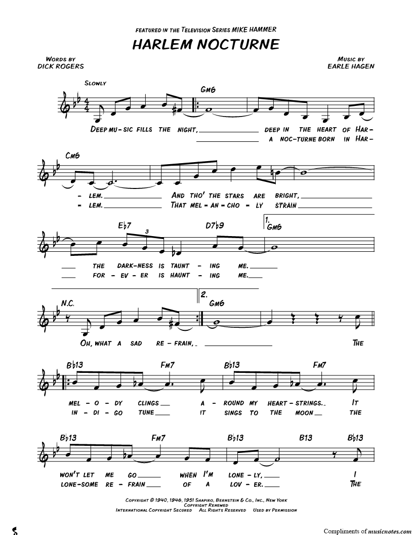 Leadsheets typically only contain the lyrics, chord symbols and melody line of a song and are rarely more than one page in length. Musicians will often use these skeletons to improvise their own arrangements. Leadsheets often do not contain complete lyrics to the song.