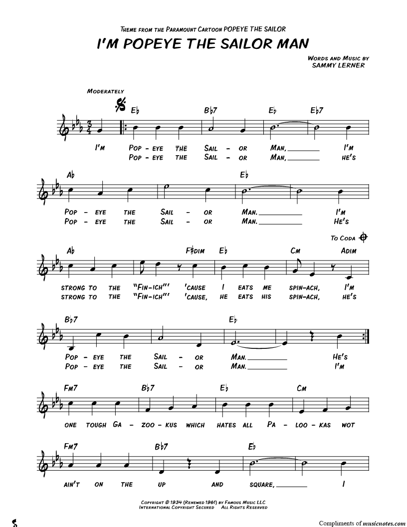 I'm Popeye the Sailor Man, |