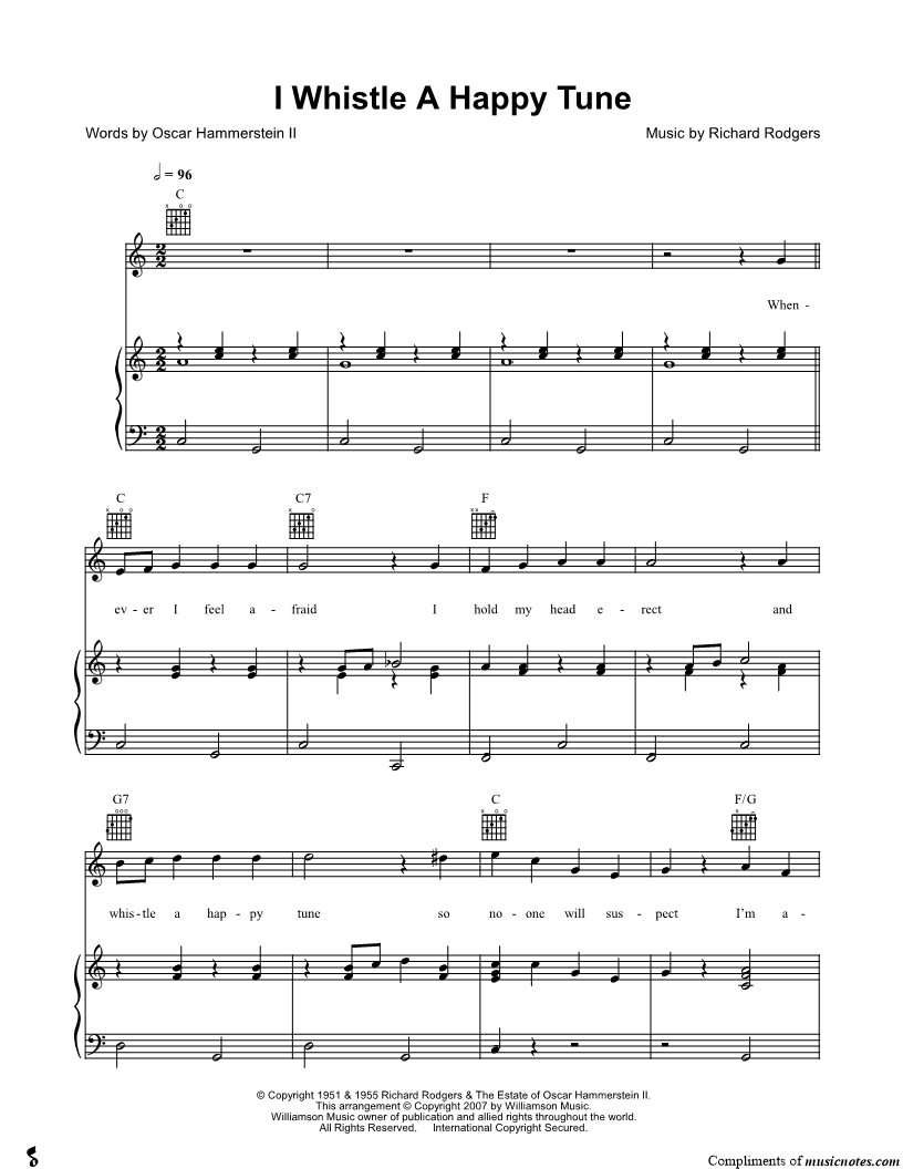 Whenever I feel afraid I hold my head erect and whistle a happy tune so noone will suspect I'm a- fraid. |