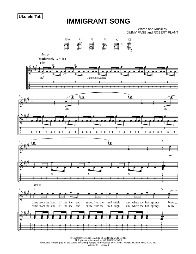 Ukulele TAB Ukulele/Vocal/Chords |