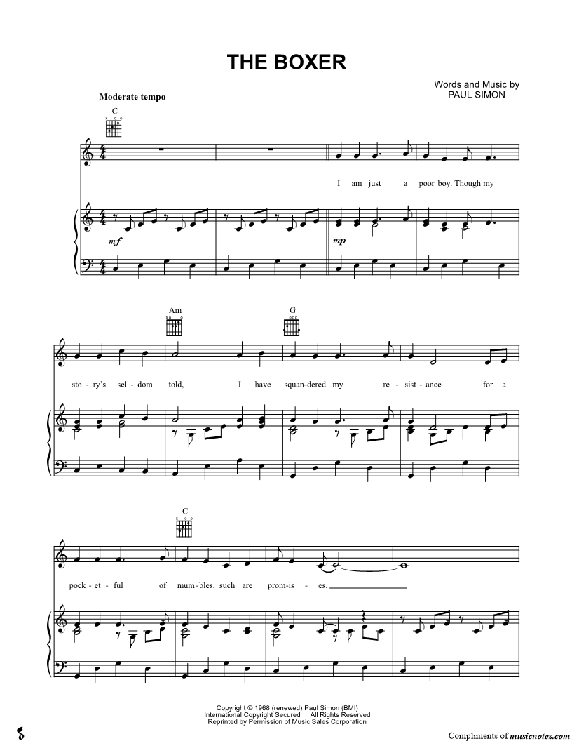 Musicnotes sells a wide variety of digital sheet music products including Singer Pros, Beginner Notes, Choral music, Piano Solos, Lead Sheets, Piano/Vocal/Guitar, Solo and Accompaniment, and fretted instrument tablature.