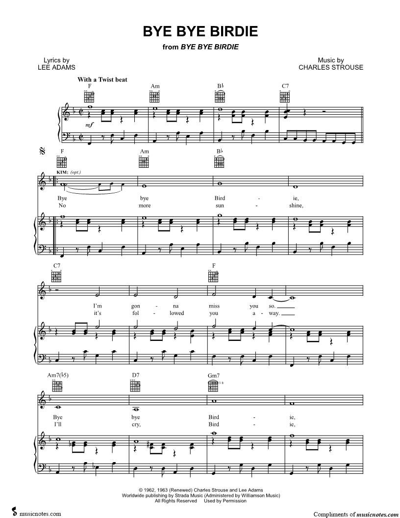 Bye bye Birdie, I'm gonna miss you so. |