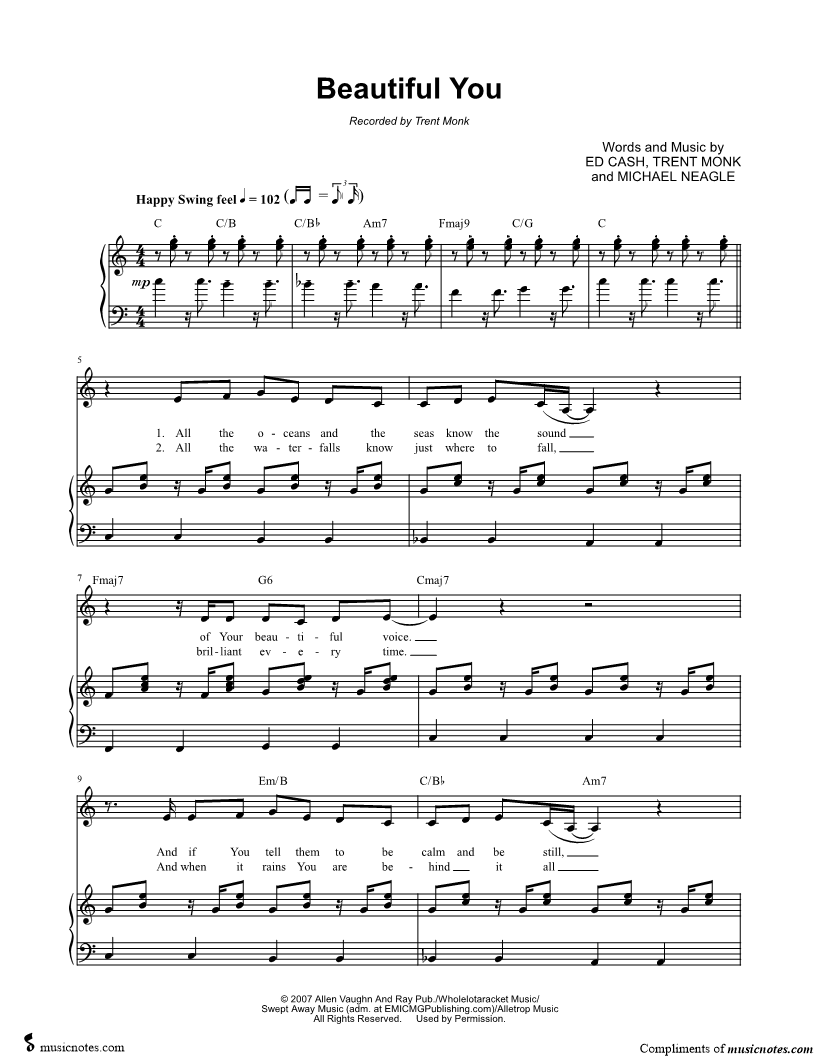 Many of the arrangements on Musicnotes have transpositions available, typically in C Major, as well as 3 sharps and 3 flats. If you do not see your desired key, you can request a transposition by reaching out to Customer Support.