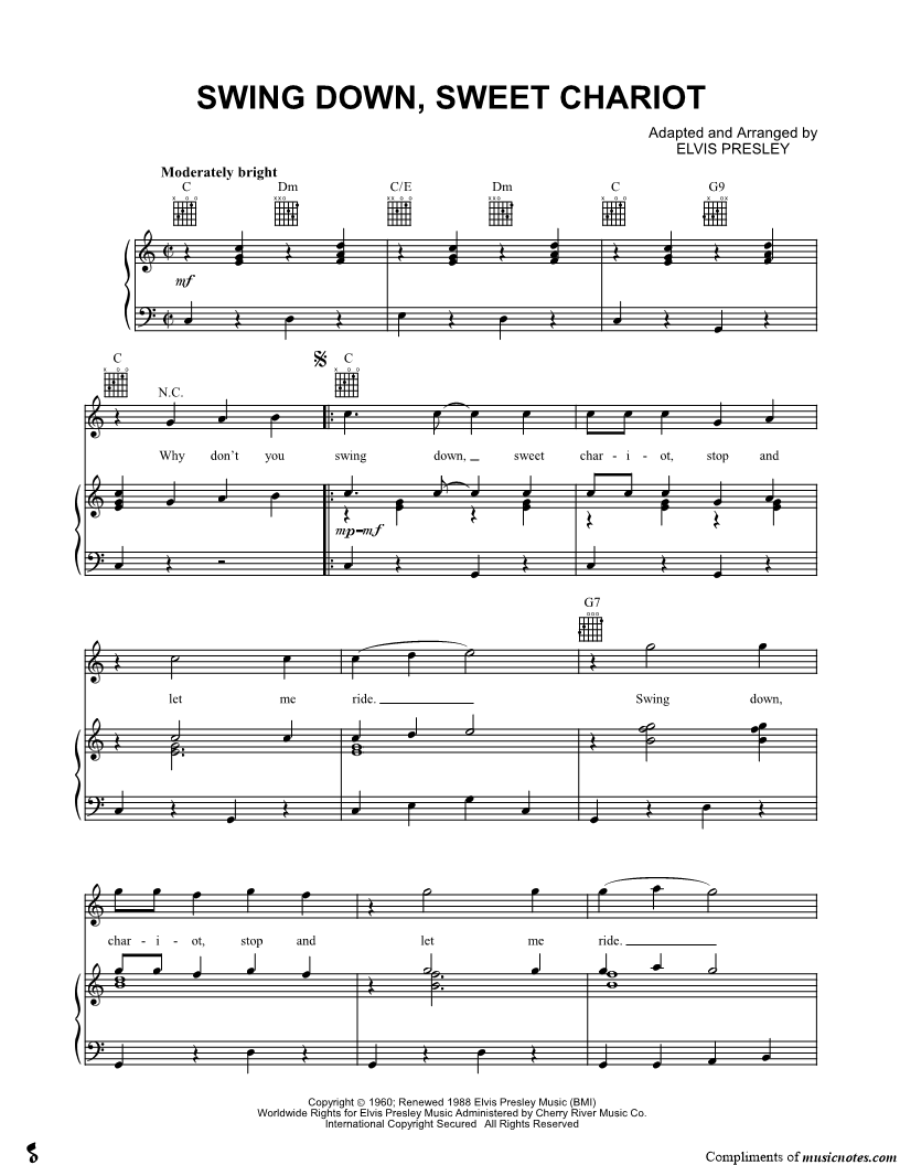 Why don't you swing down, sweet chariot, stop and let me ride. |