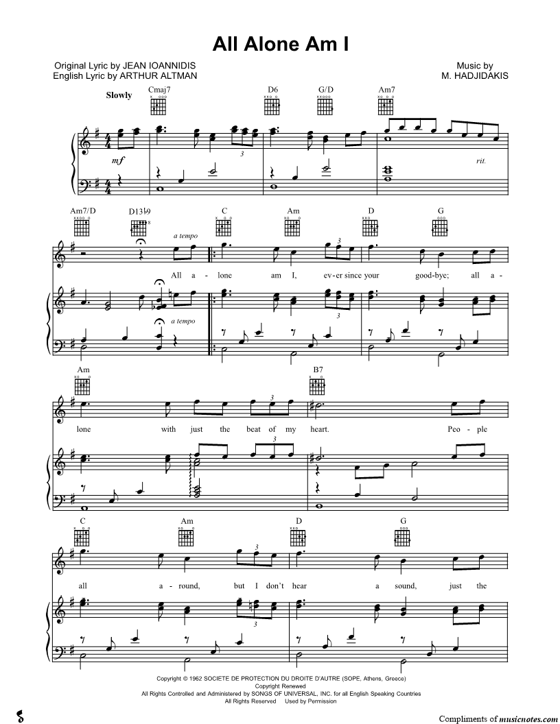 All alone am I, ever since your goodbye; all alone with just the beat of my heart. |