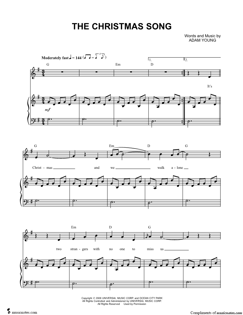 It's Christmas and we walk alone two strangers with no one to miss us on our own, out in the cold. |