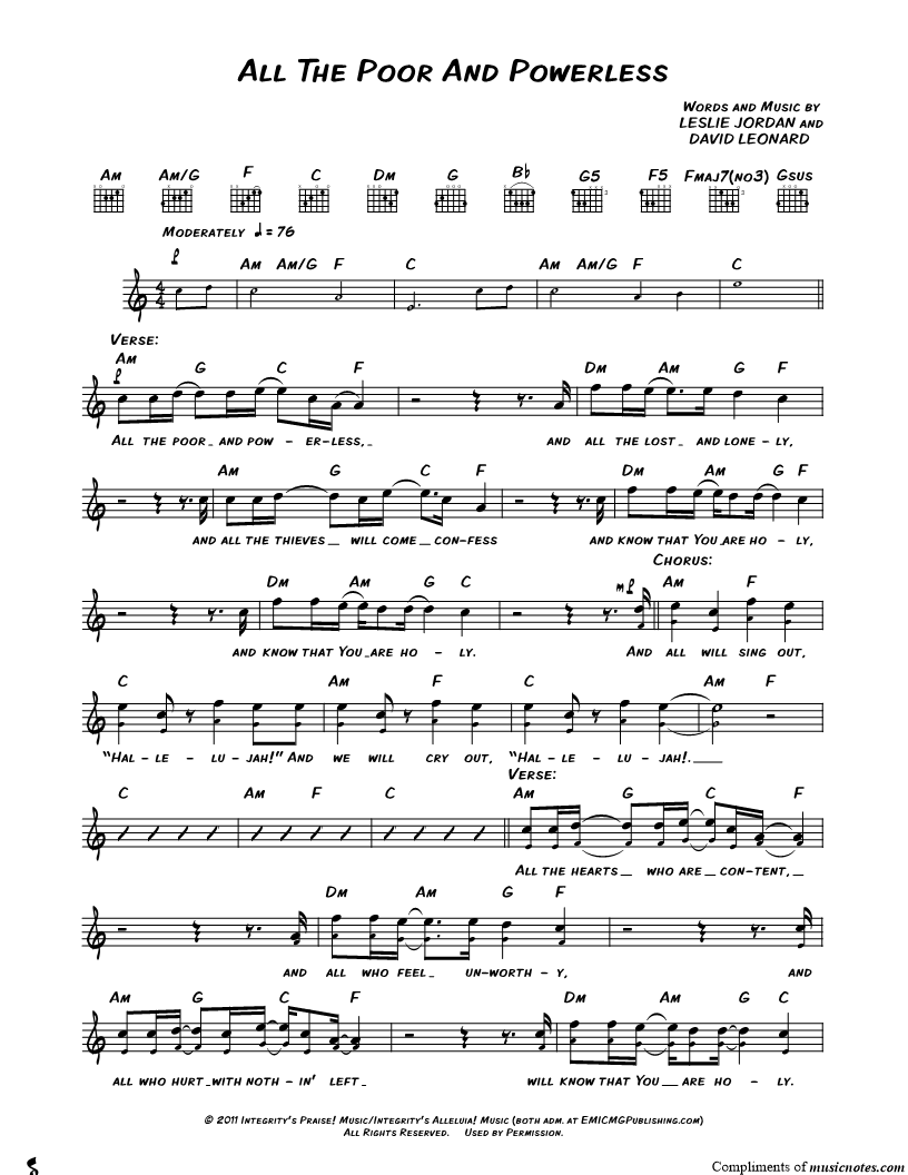 All the poor and powerless, and all the lost and lonely, and all the thieves will come confess and know that You are holy, and know that You are holy. |