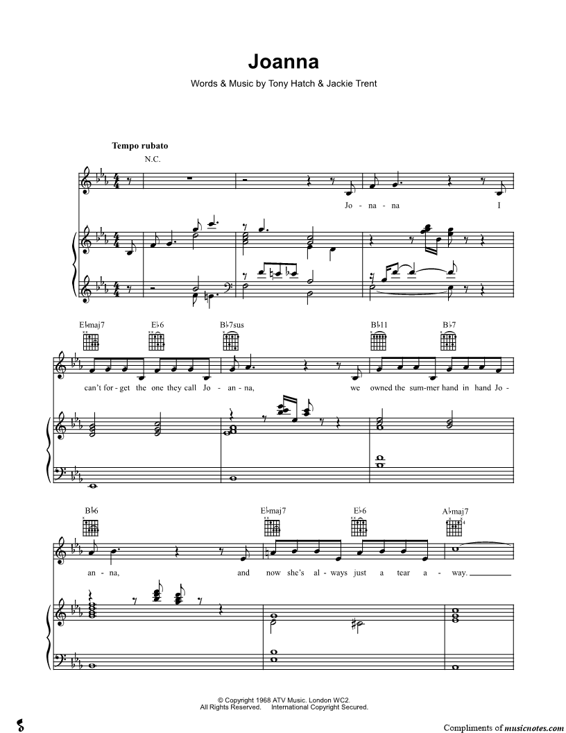 Jonana I can't forget the one they call Joanna, we owned the summer hand in hand Joanna, and now she's always just a tear away. |