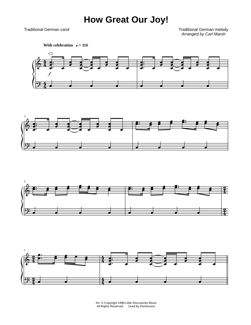 Many of the arrangements on Musicnotes have transpositions available, typically in C Major, as well as 3 sharps and 3 flats. If you do not see your desired key, you can request a transposition by reaching out to Customer Support.
