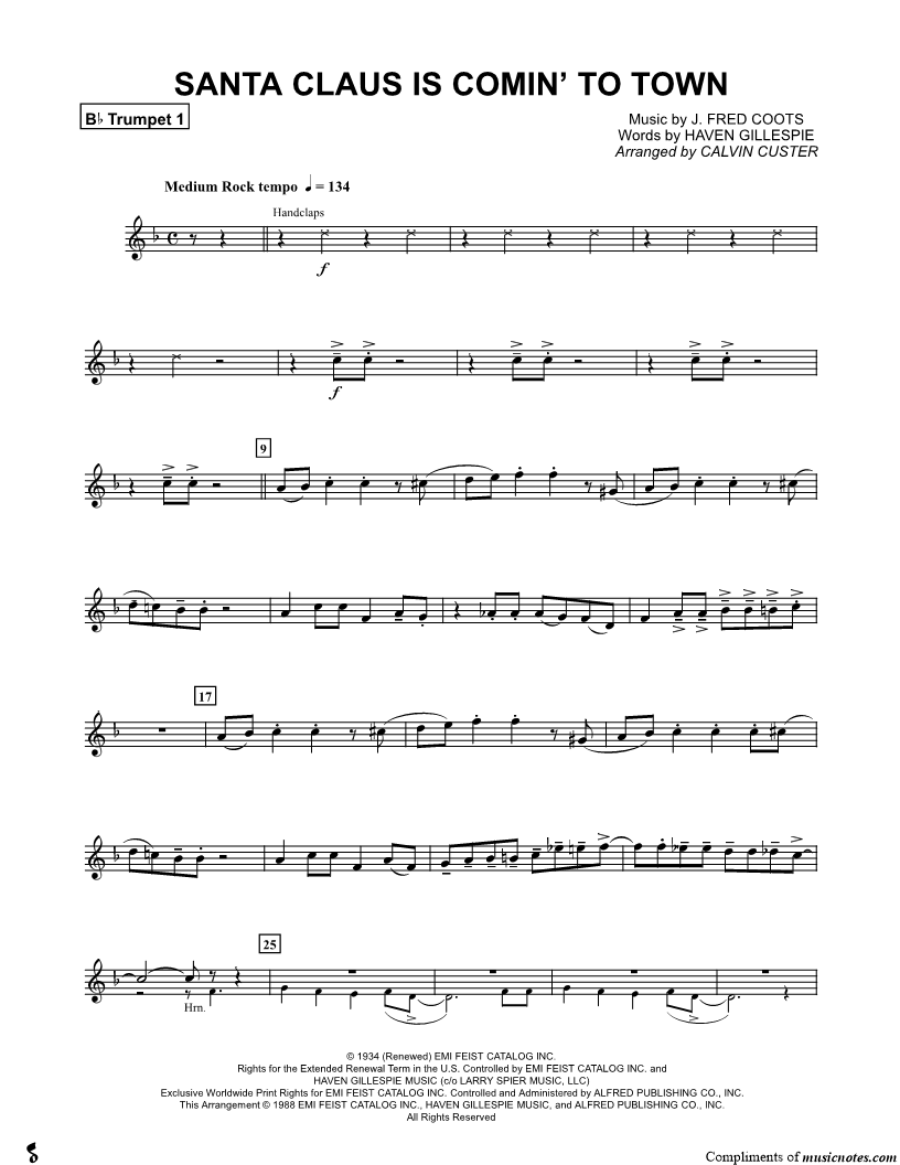 Santa Claus Is Comin' to Town - Trumpet 1 (Brass Choir) |