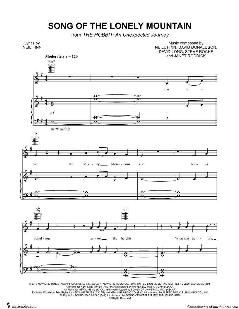 Song of the Lonely Mountain (from The Hobbit: An Unexpected Journey) |