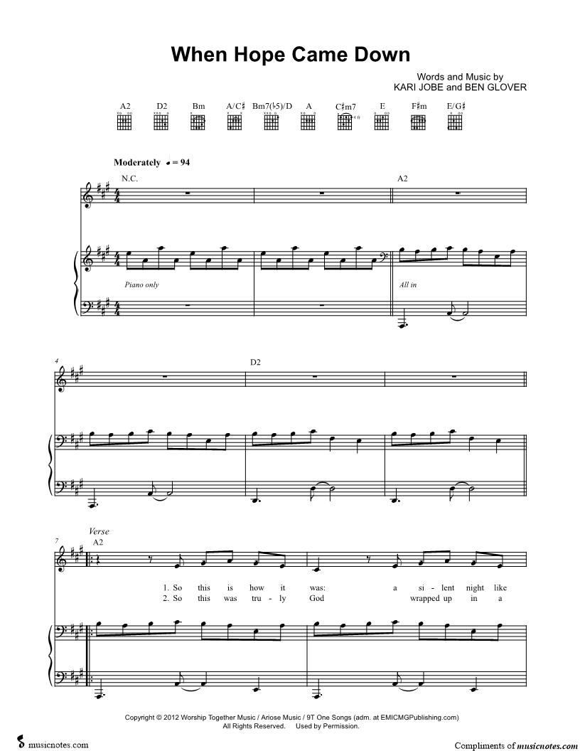 Many of the arrangements on Musicnotes have transpositions available, typically in C Major, as well as 3 sharps and 3 flats. If you do not see your desired key, you can request a transposition by reaching out to Customer Support.