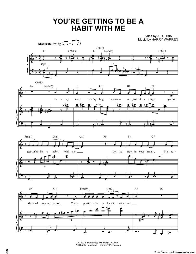 Ev'ry kiss, ev'ry hug seems to act just like a drug; you're gettin' to be a habit with me. |