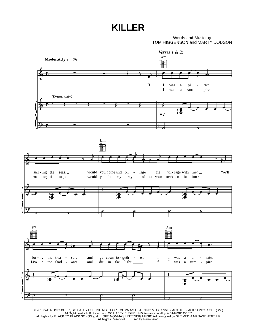 Voice, range: E4-A5 Piano Guitar Backup Vocals | |