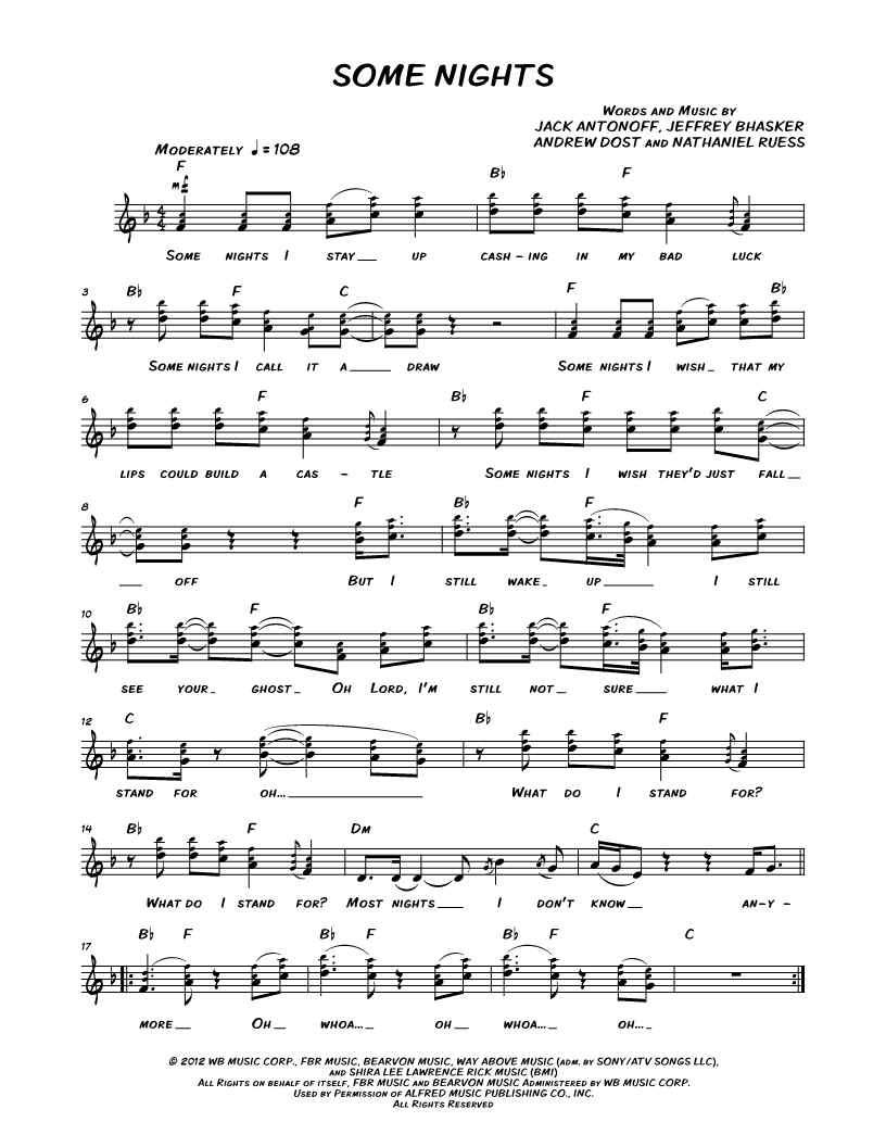 Some nights I stay up cashing in my bad luck Some nights I call it a draw Some nights I wish that my lips could build a castle Some nights I wish they'd just fall off |