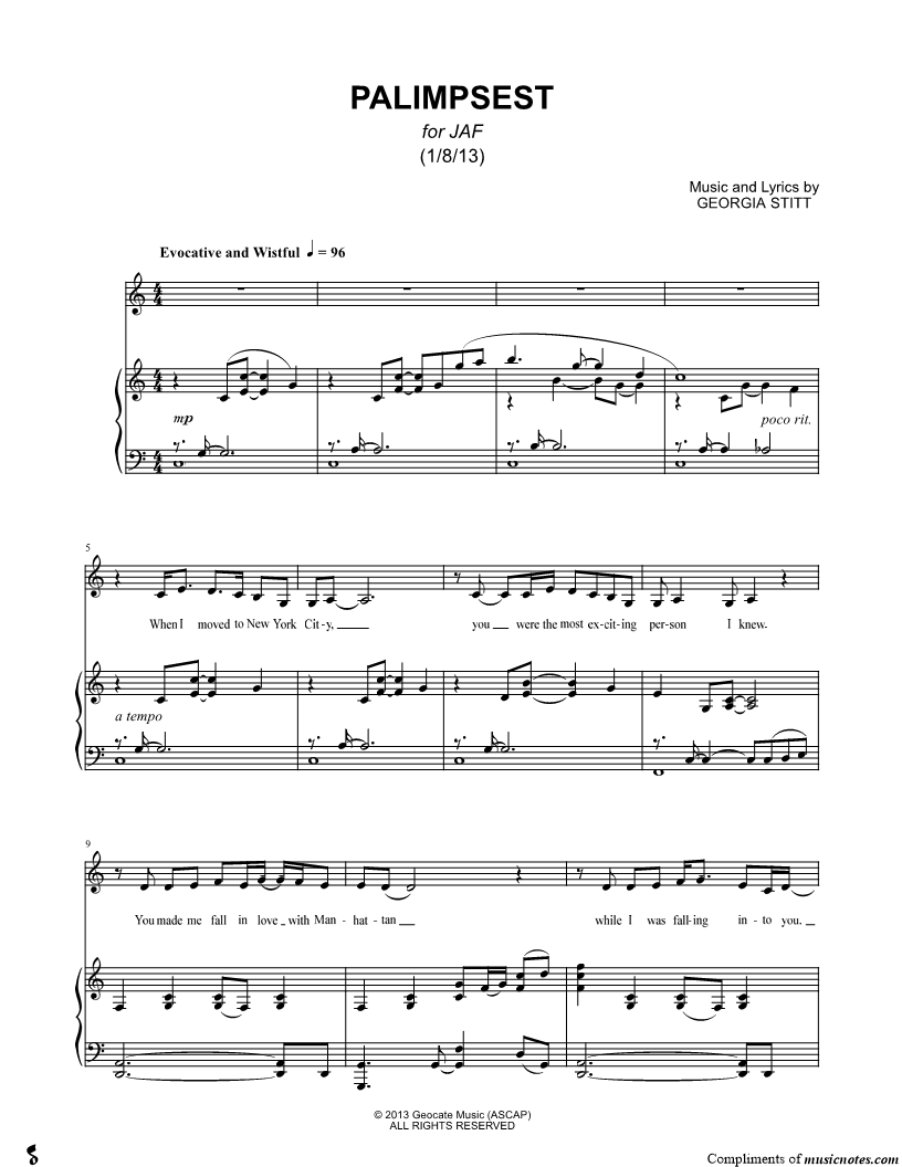 Musicnotes sells a wide variety of digital sheet music products including Singer Pros, Beginner Notes, Choral music, Piano Solos, Lead Sheets, Piano/Vocal/Guitar, Solo and Accompaniment, and fretted instrument tablature.