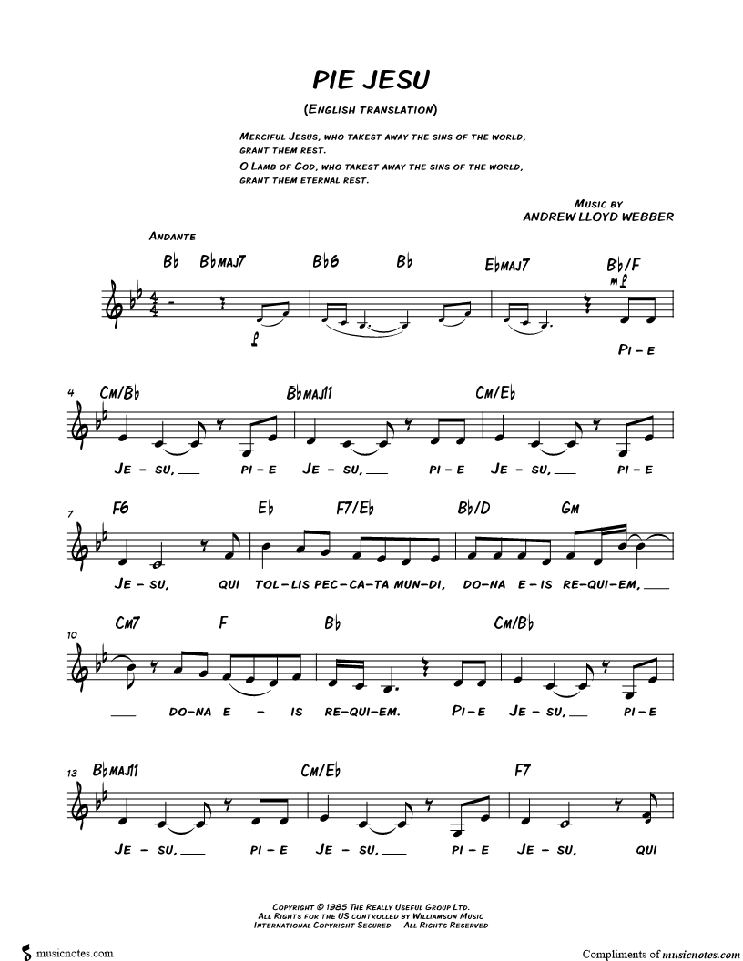 Pie Jesu, pie Jesu, pie Jesu, pie Jesu, qui tollis peccata mundi, dona eis requiem, dona eis requiem. |