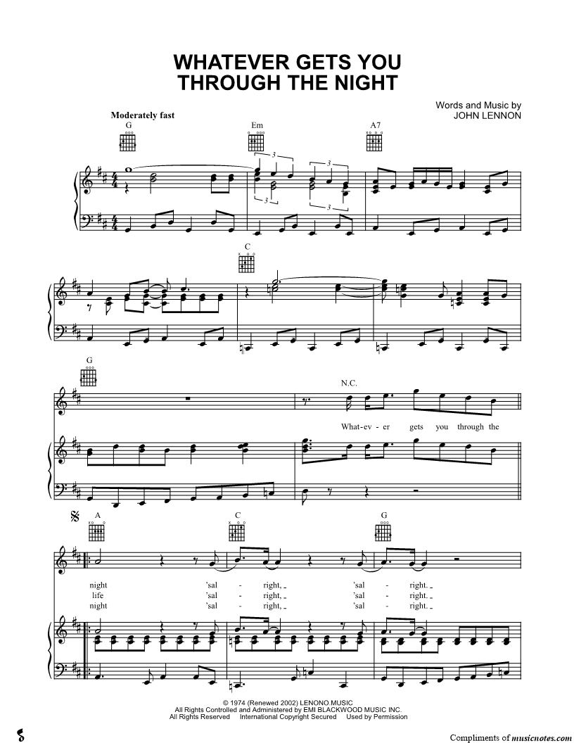 Whatever gets you through the night 'salright, 'salright. |